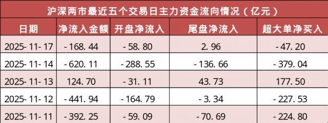 今日沪深两市主力资金开盘净流出58.8亿元,尾盘净流入2.96亿元,两市全天主力资金净流出168.44亿元。